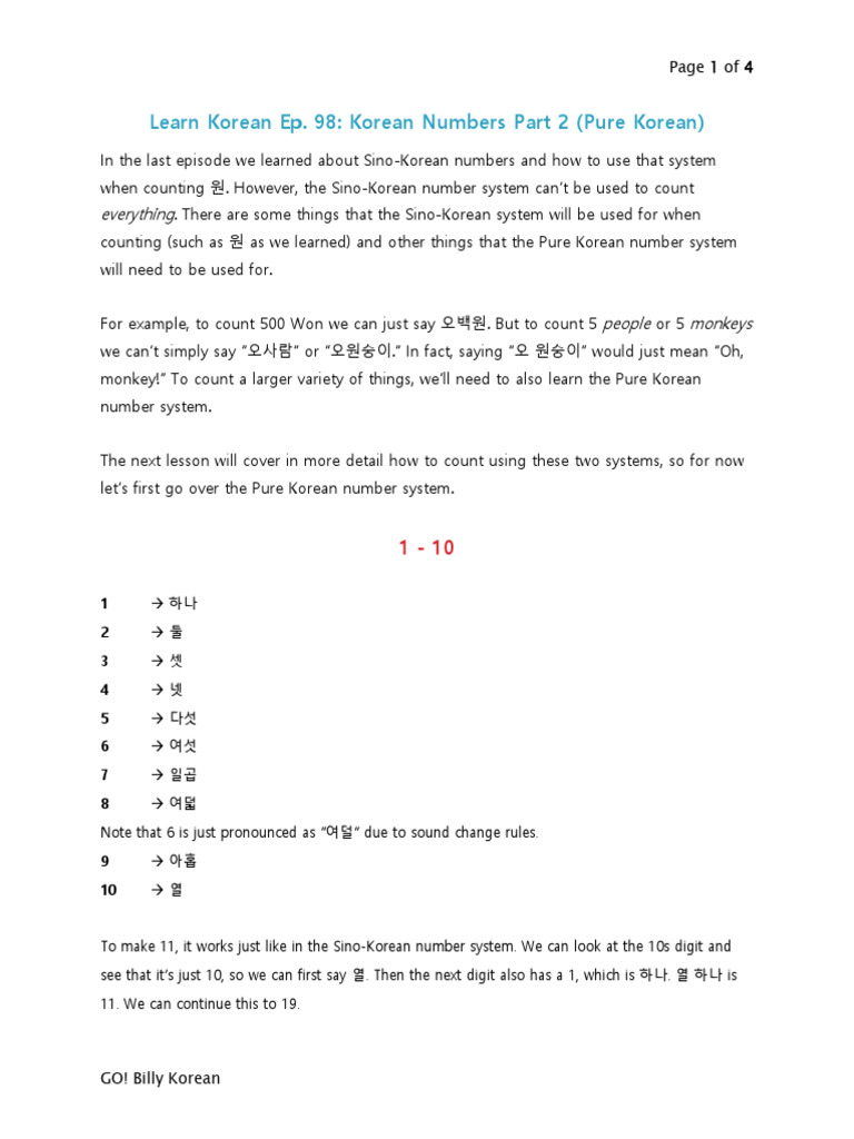 19. Korean Numbers Part 2 (Pure Korean) Author GO! Billy Korean PDF