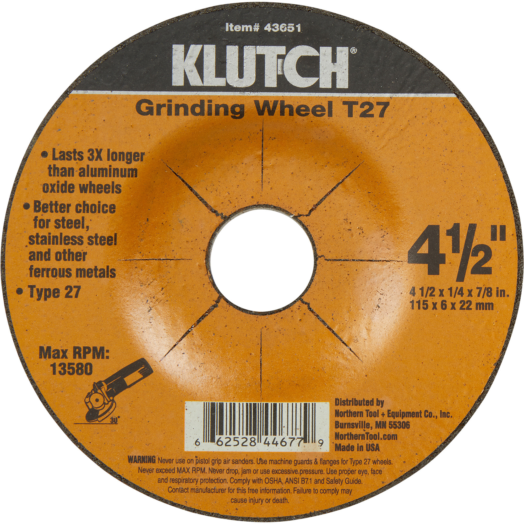Klutch Metal Grinding Wheel — 4.5in. x 1/4in. Northern Tool