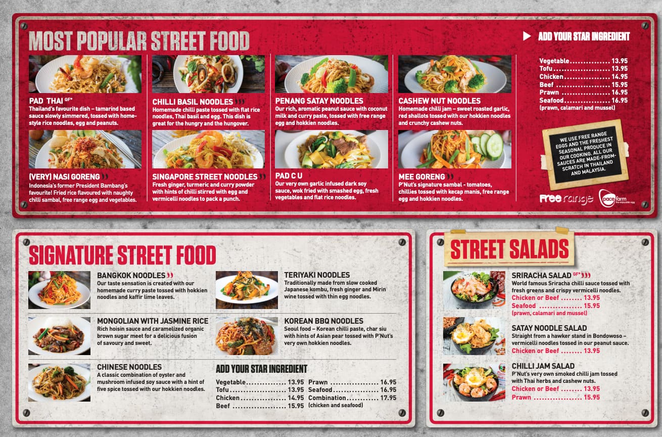 Menu at P'Nut Street Noodles Kawana, Sunshine Coast