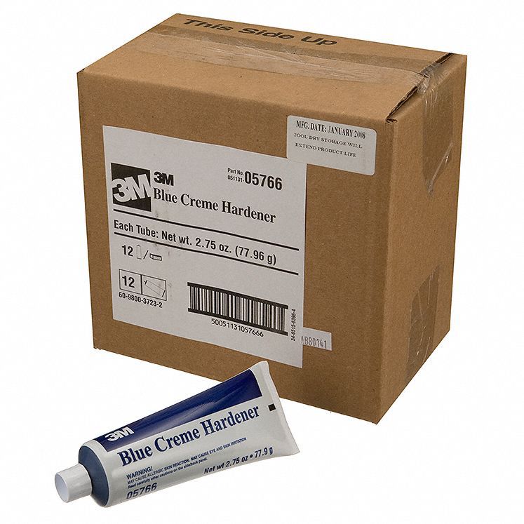 3M Cream Hardener Blue 05766 Cream Hardener the evercoat blue cream hardener is a hardening agent designed to speed up body repairs. creates chemical reaction with polyester filler for fast cure. Repairs metal, masonry, concrete, painted wood, bare wood, drywall and more when mixed. The creamy consistency mixes easily. Cream Hardener.