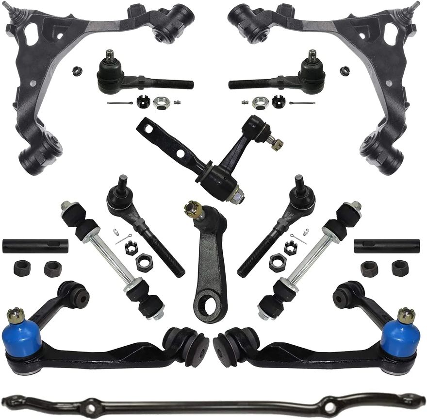 15pc Front Upper Lower Control Arms Sway Bar Links Tie Rods Suspension Kit