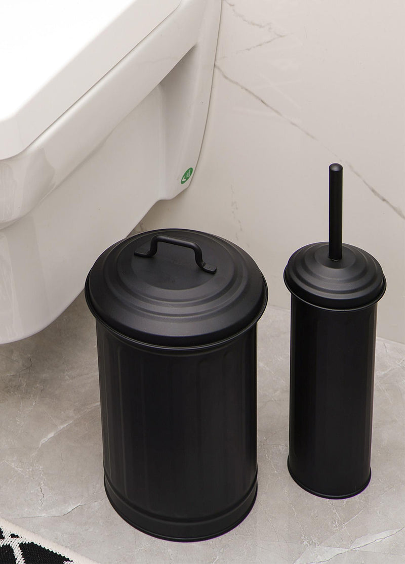 Black Waste Bin & Toilet Brush Set Rozi