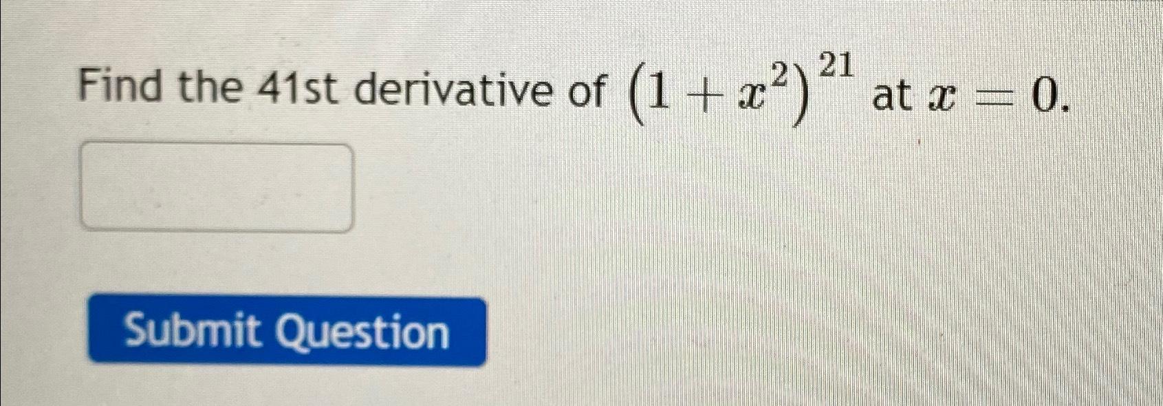 Solved Find the 41st derivative of (1+x2)21 at x=0.