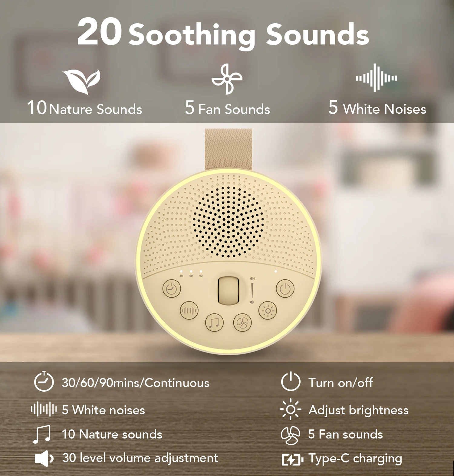 2023 New Sleep Sound Machines And Night Light 20 Soothing Nature Sounds