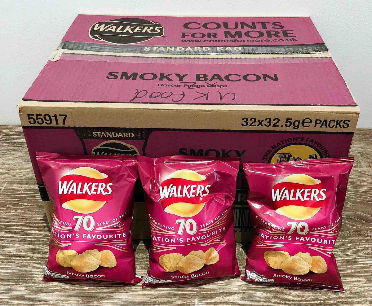 Walkers Smokey Bacon Flavoured Crisps 32 Pack Box UK FOODS DOWN UNDER