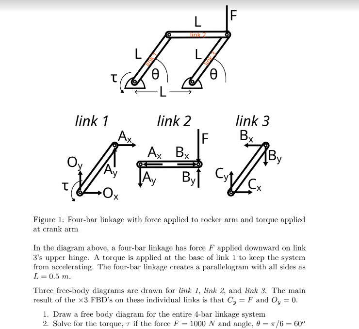 Solved Figure 1 Fourbar linkage with force applied to