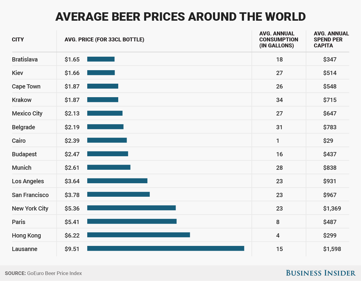 Beer prices in different cities around the world Business Insider