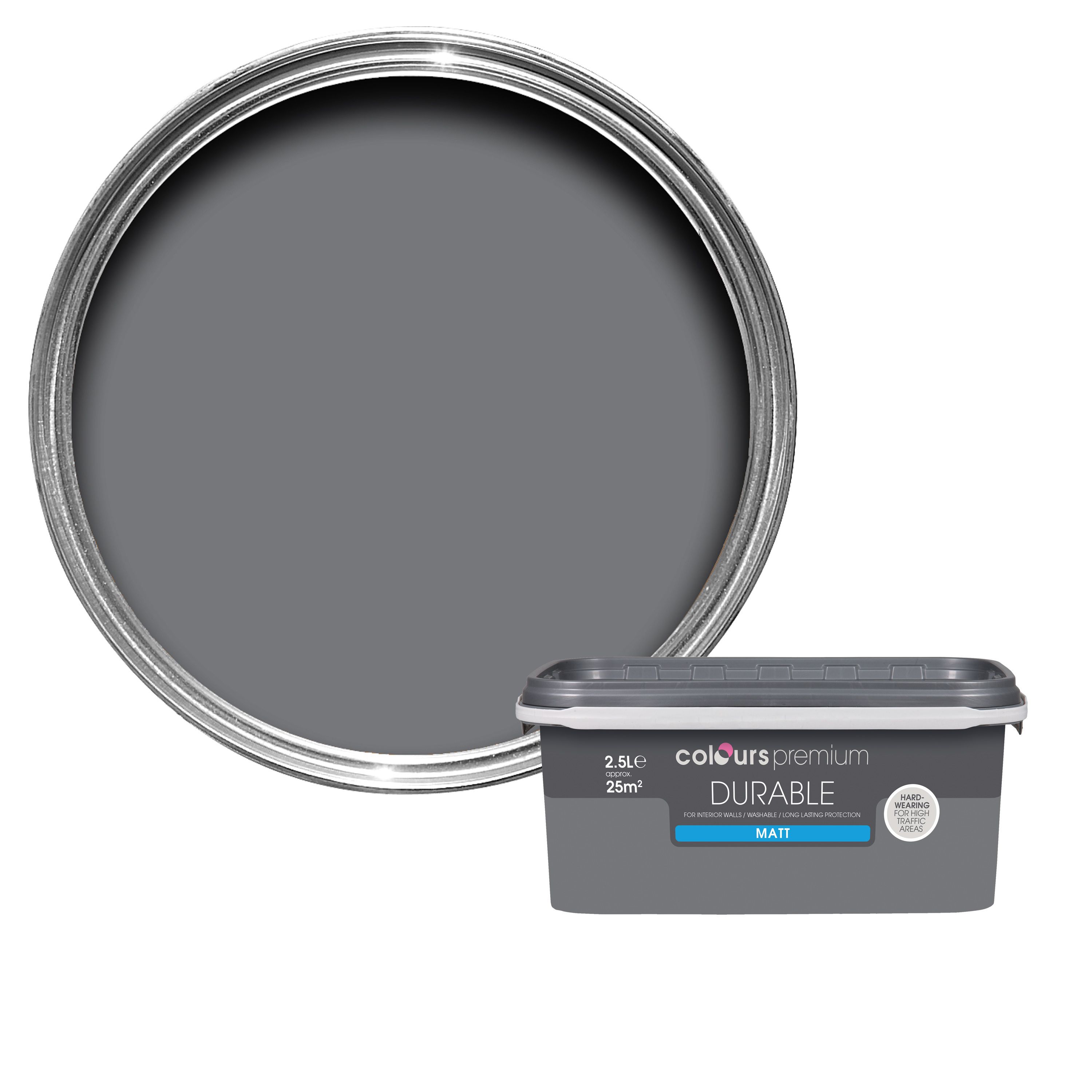Colours Durable Grey Slate Matt Emulsion Paint 2.5L Departments DIY