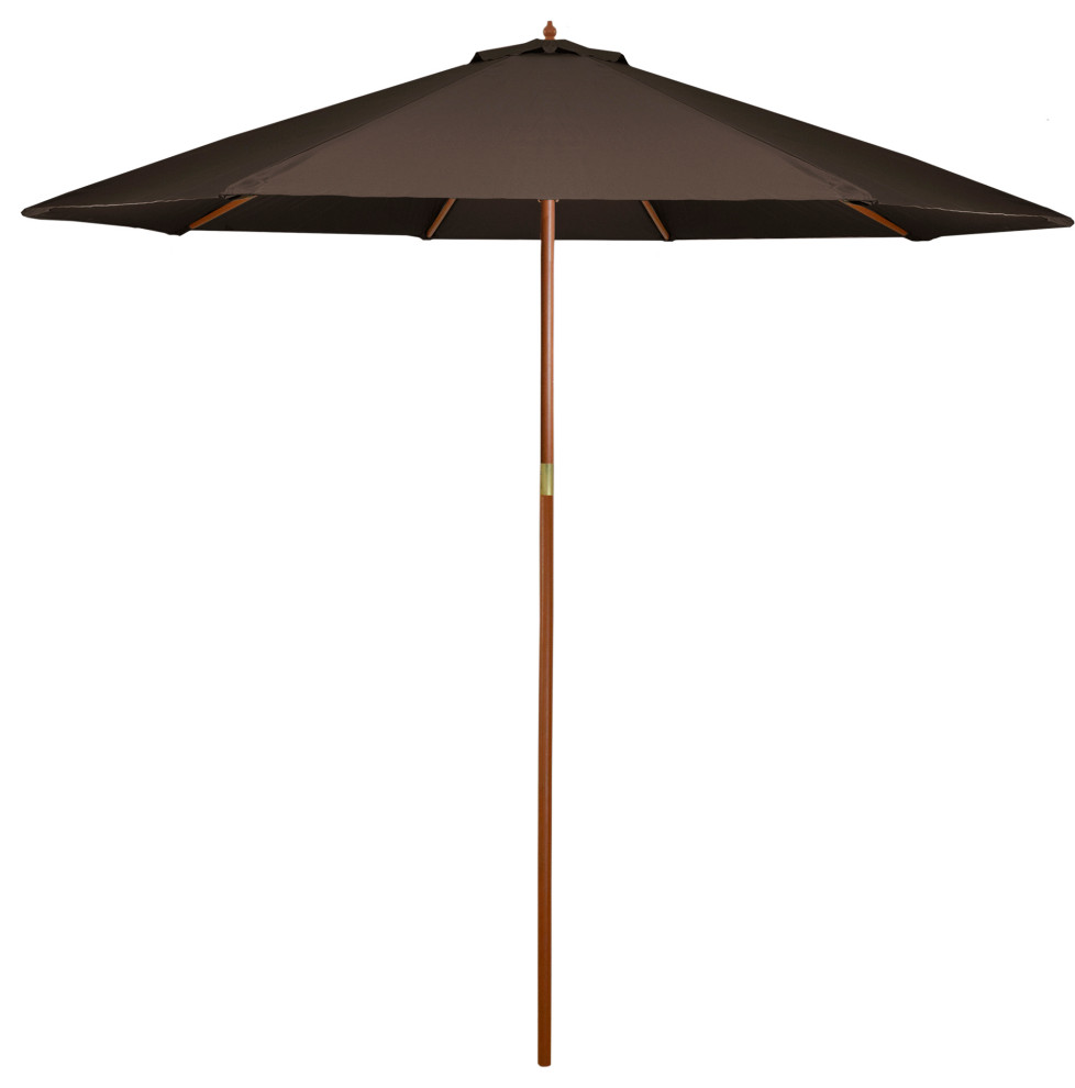 9ft Outdoor Patio Market Umbrella with Wooden Pole, Brown