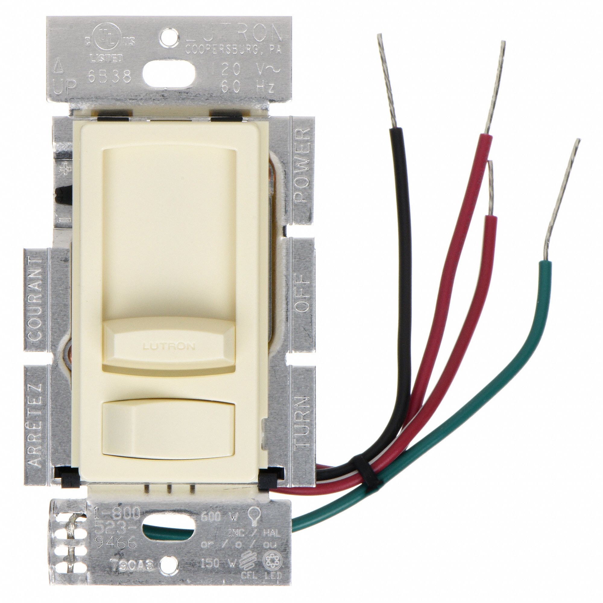 LUTRON Lighting Dimmer CFL/Halogen/Incandescent/LED, Hard Wired, 1Pole, 3Way, 1 Gangs, 120 V