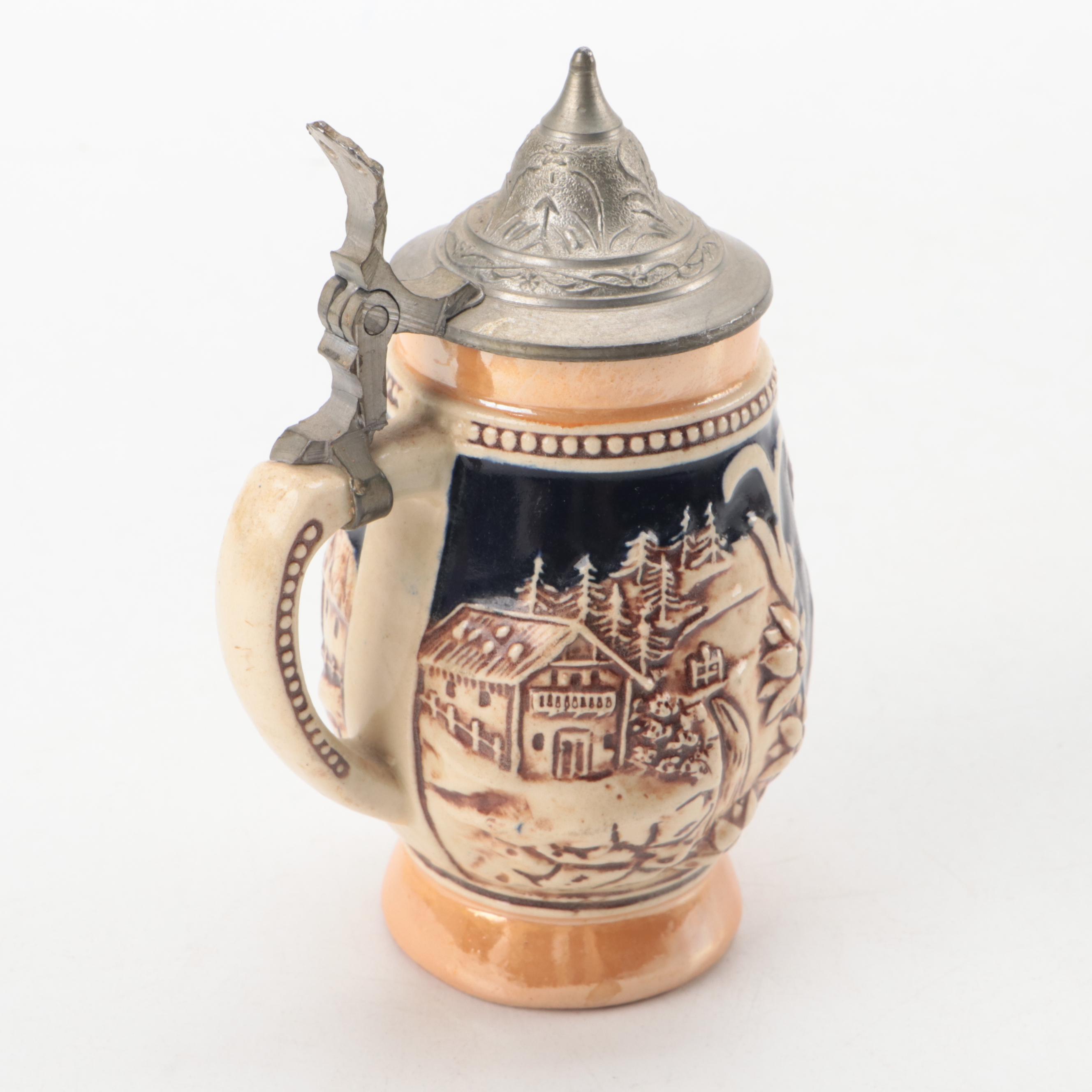 Ceramic Beer Steins, Two with Pewter Lids EBTH