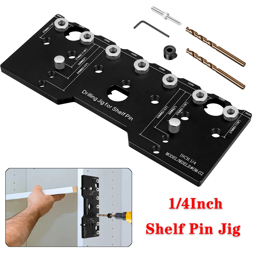HCQXNSL Shelf Pin Jig 1/4 Inch Aluminum Alloy Shelf Pin Drilling Guide Shelf Pin Jig 1/4 Add perfectly spaced shelf pin holes to your projects with the kreg shelf pin jig. Rockler's pro shelf drilling jig with 1/4'' shelf drilling bit and case includes: 1m+ visitors in the past month Drill jig for straight holes: Standard 32mm distance between each hardened metal guide bushing. 32mm hole distance and accurate and clean 1/4 inch shelf pin hole. Shelf Pin Jig 1/4.