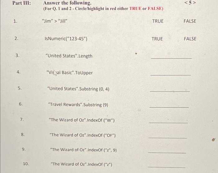 Solved Part I Answer the following (Circle/highlight in