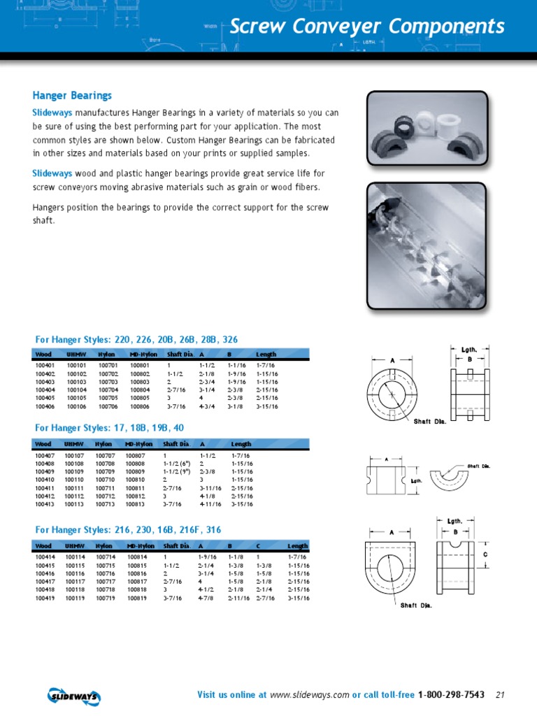 Products Tapco, Inc. Hanger Bearing Catalogue Thordon sxl conveyor bearings are made from a tough, wear resistant and unique polymer alloy that require no oil or grease lubrication. Hanger bearings are journal or plain type bearings that mount in hangers and are replaceable when worn. Hanger is flush mounted inside the trough permitting dust tight or weather proof operation. Hard iron or bronze bearings are normally. Hanger Bearing Catalogue.