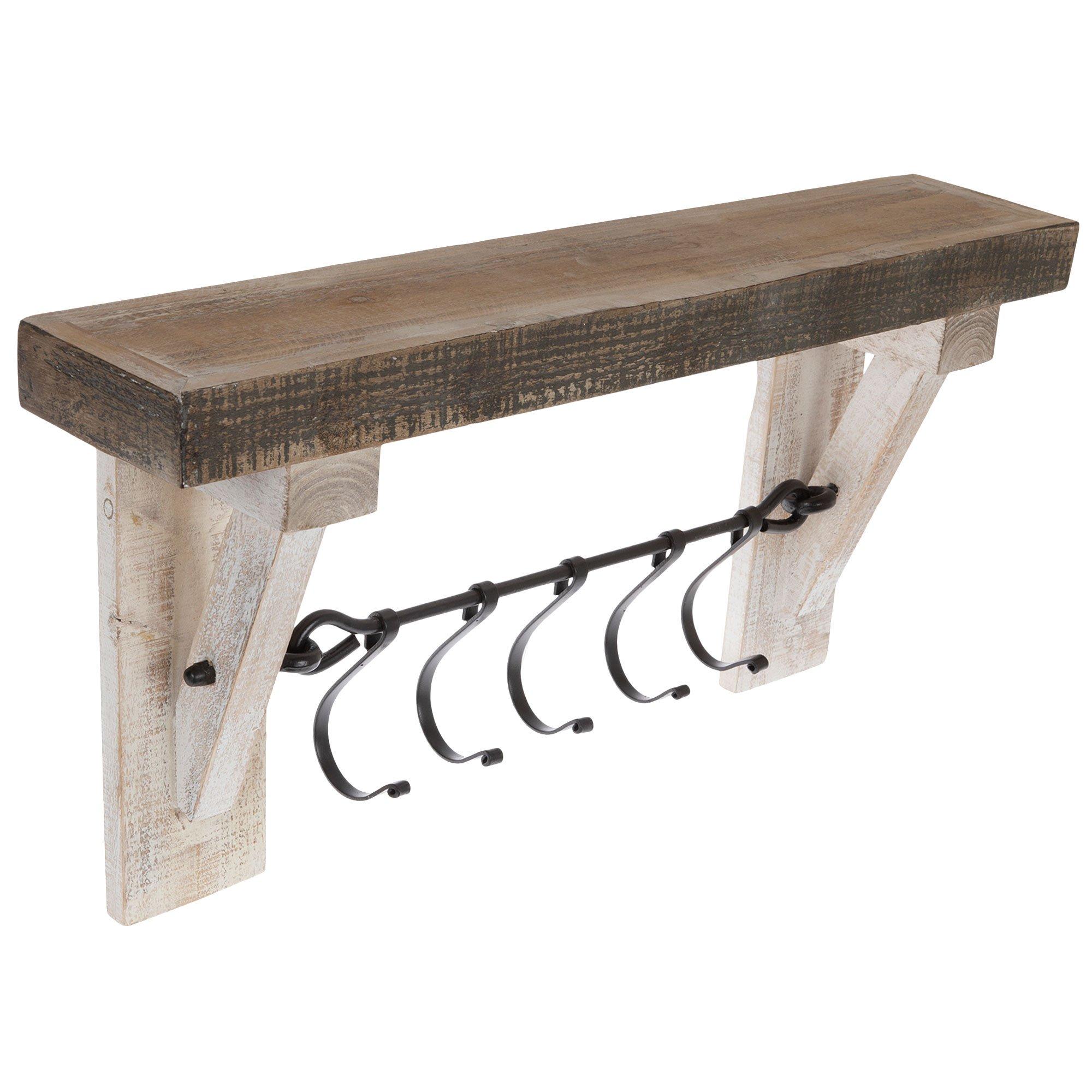 White Rustic Wood Wall Shelf With Hooks Hobby Lobby 1637768