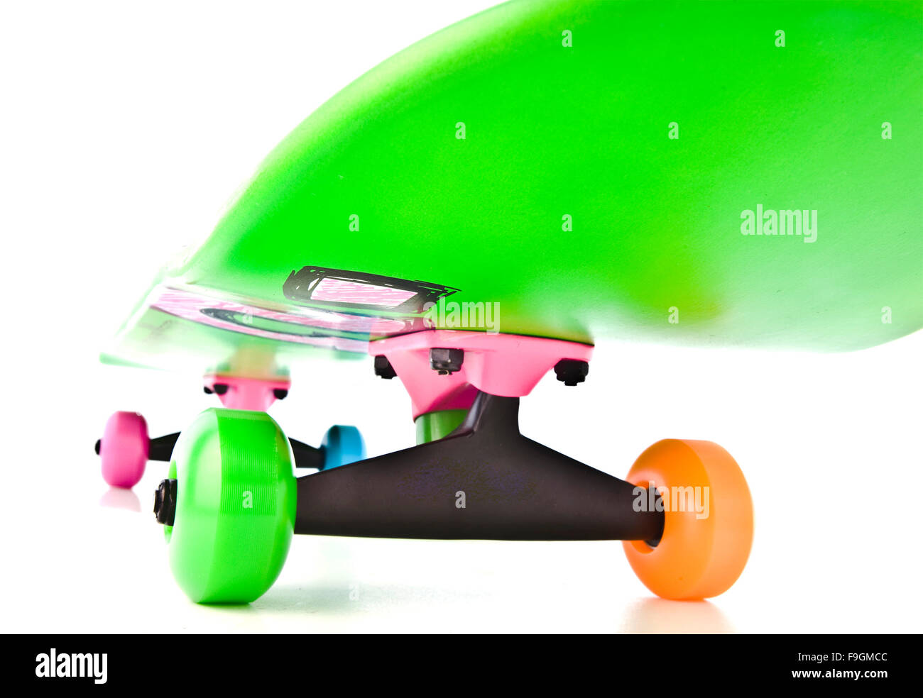Skateboard with pink and green wheels hires stock photography and