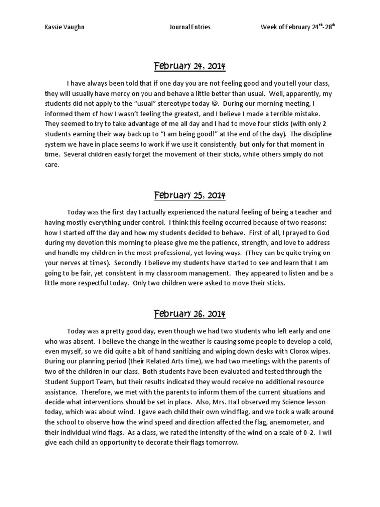 journal entries week of feb 2428 student teaching Classroom
