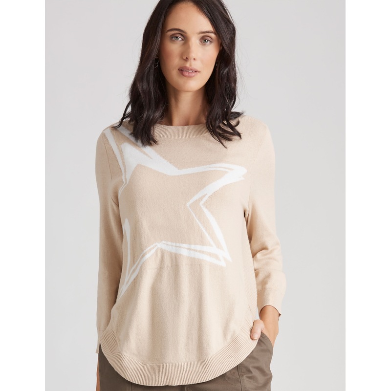 Buy KATIES Womens Jumpers & Cardigans Beige Star Print 3/4