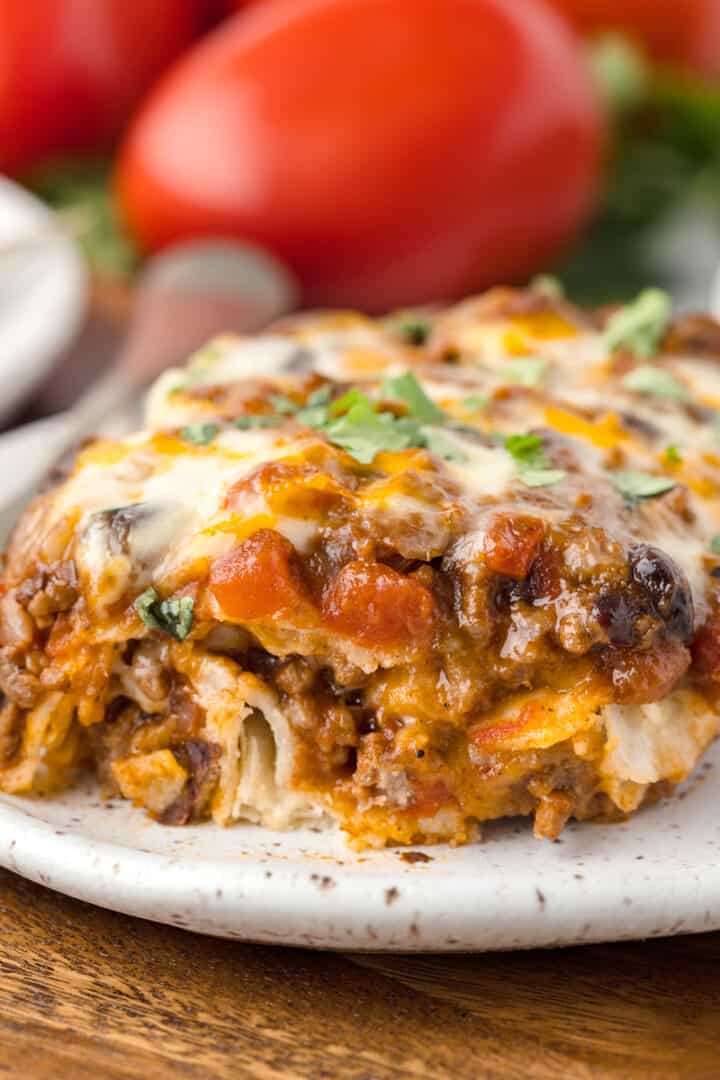 Enchilada Casserole Layered This easy layered enchilada casserole is the perfect way to spice up your dinner routine without spending hours in the kitchen. This layered chicken enchilada casserole is an easy recipe that takes traditional chicken enchiladas and transforms them into a. Layered enchilada casserole is the perfect comfort food with layers of tortillas, ground beef, beans, corn, and lots of gooey. Enchilada Casserole Layered.