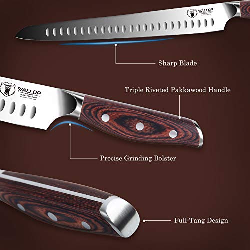 WALLOP Slicing Carving Knife 12 inch Meat Cutting Knife Brisket Knife Meat Carving Knife For Brisket Paudin brisket knife, 12 inch carving knife, stainless steel brisket slicing knife for meat cutting, razor sharp butcher knife with granton. The pointy tip of a carving knife helps maneuver around joints and bones in a whole bird, leg of lamb, or rib roast, while a. Too heavy and large for smaller tasks. Victorinox 12 inch fibrox pro. Dalstrong gladiator. Meat Carving Knife For Brisket.