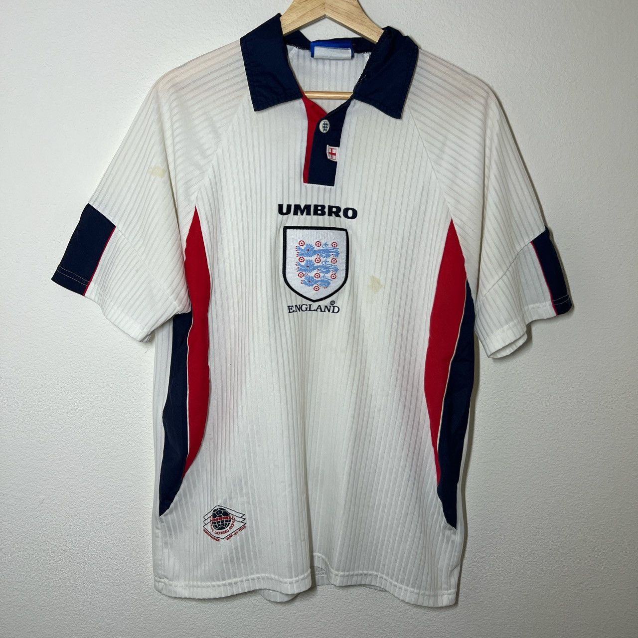 Vintage England 1997 1998 1999 home shirt jersey soccer football kit Jersey England 1998 Get kitted out for world cup 2022 with this officially licensed england retro football shirt. This classic and iconic officially licensed team england football/soccer jersey is from the 1998 world cup hosted in france. Check out all england 1998 kits as well as many more old and new football shirts from various top teams in the football kit archive. England. Jersey England 1998.
