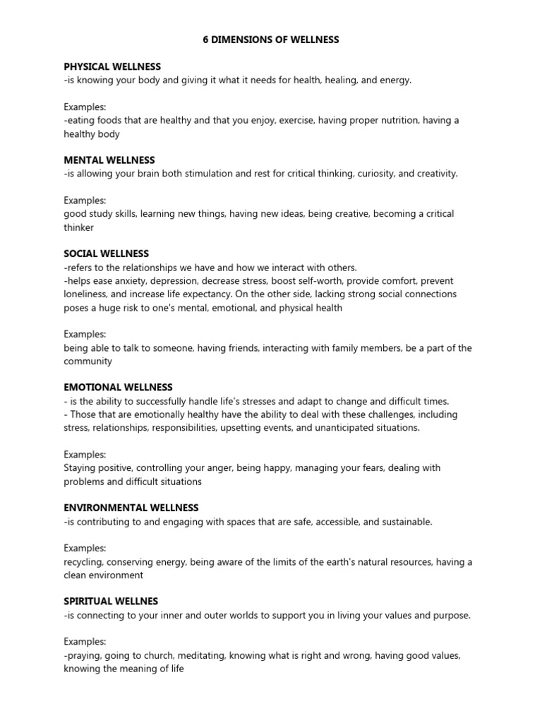 6 Dimensions of Wellness PDF