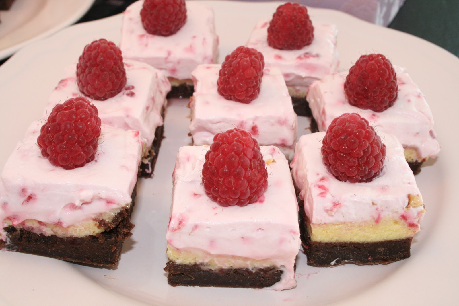 Glad i mat Hummingbirds brownies og ostekake med bringebærkrem