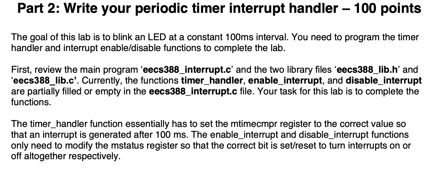 Solved Part 2 Write your periodic timer interrupt handler