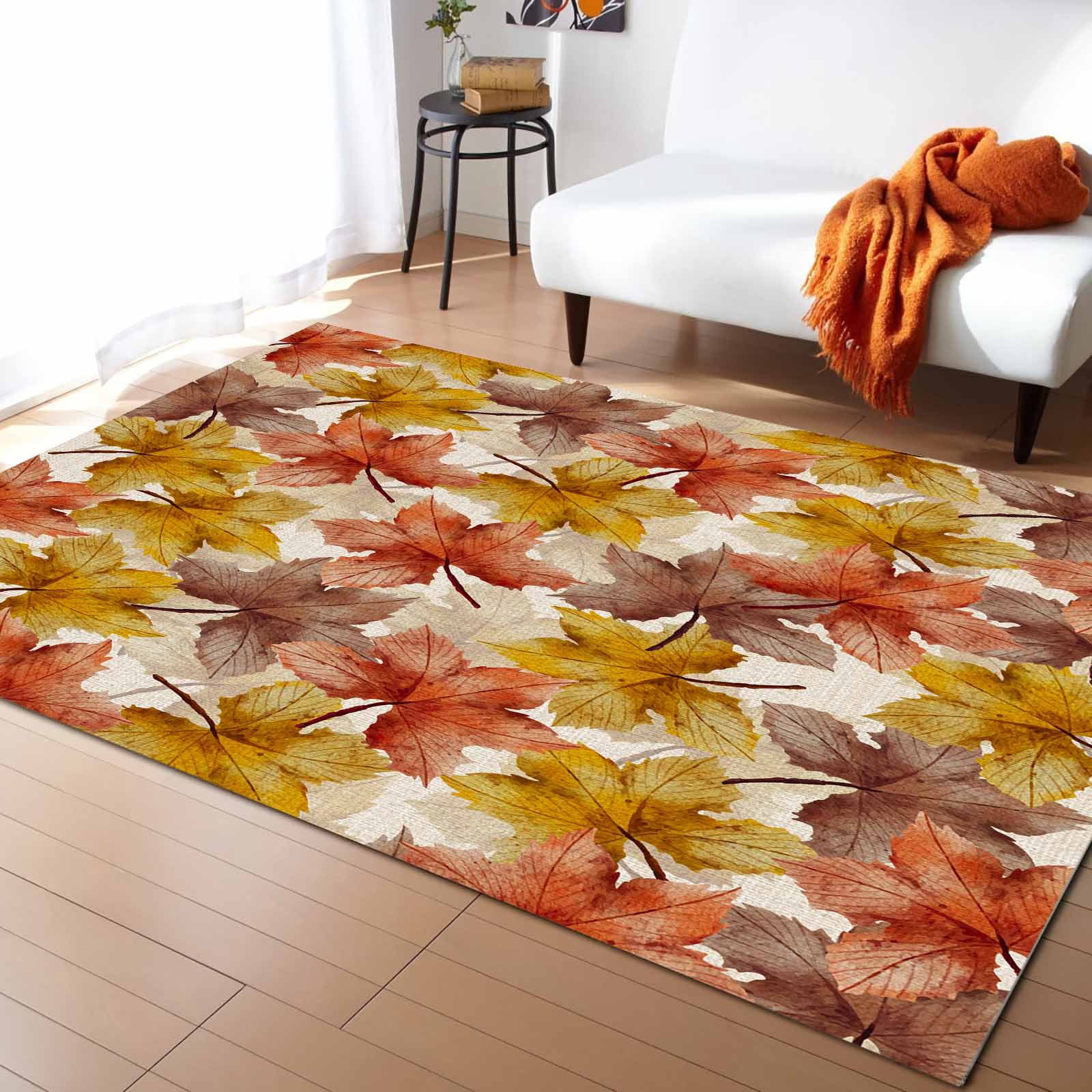Area Rug Indoor Carpet, Fall Gold Orange Brown Maple Leaves Vintage