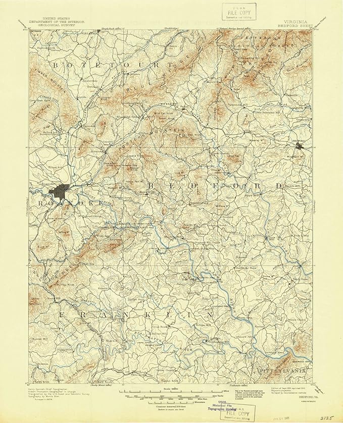1891 Bedford, VA Virginia USGS Historical Topographic