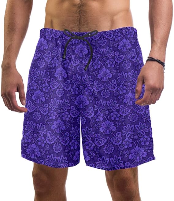 DEYYA Purple Pattern Floral Men's Swim Trunks Board Shorts Bathing Suit
