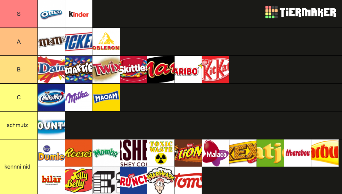 Candy & Candy bars Tier List Rankings) TierMaker