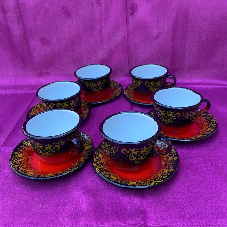 Vintage Classy Enamel Cup and Saucer Set Camping With Style Outdoor Cup Matching Saucer Find a set of matching tea cups or a bright coffee cup from our range of cups and saucers. Check out our matching cup saucer selection for the very best in unique or custom, handmade pieces from our tea sets shops. Cafe culture comes home with our collection of speciality cups with matching saucers. Professional curved bases create perfect cremas. Cup Matching Saucer.