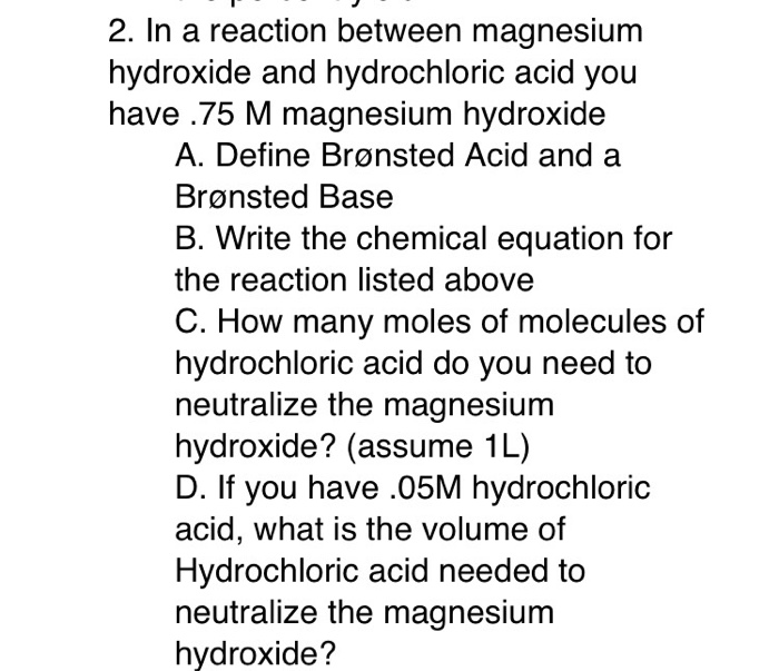 Solved 2. In a reaction between magnesium hydroxide and