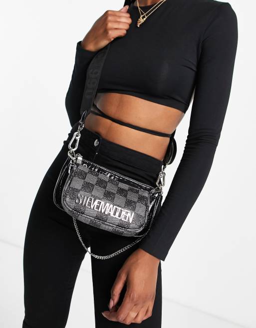 Steve Madden BurgentL monogram cross body bag with chain strap in black