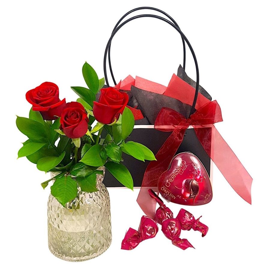 Valentines Red Rose Trio Free Flower Delivery Auckland