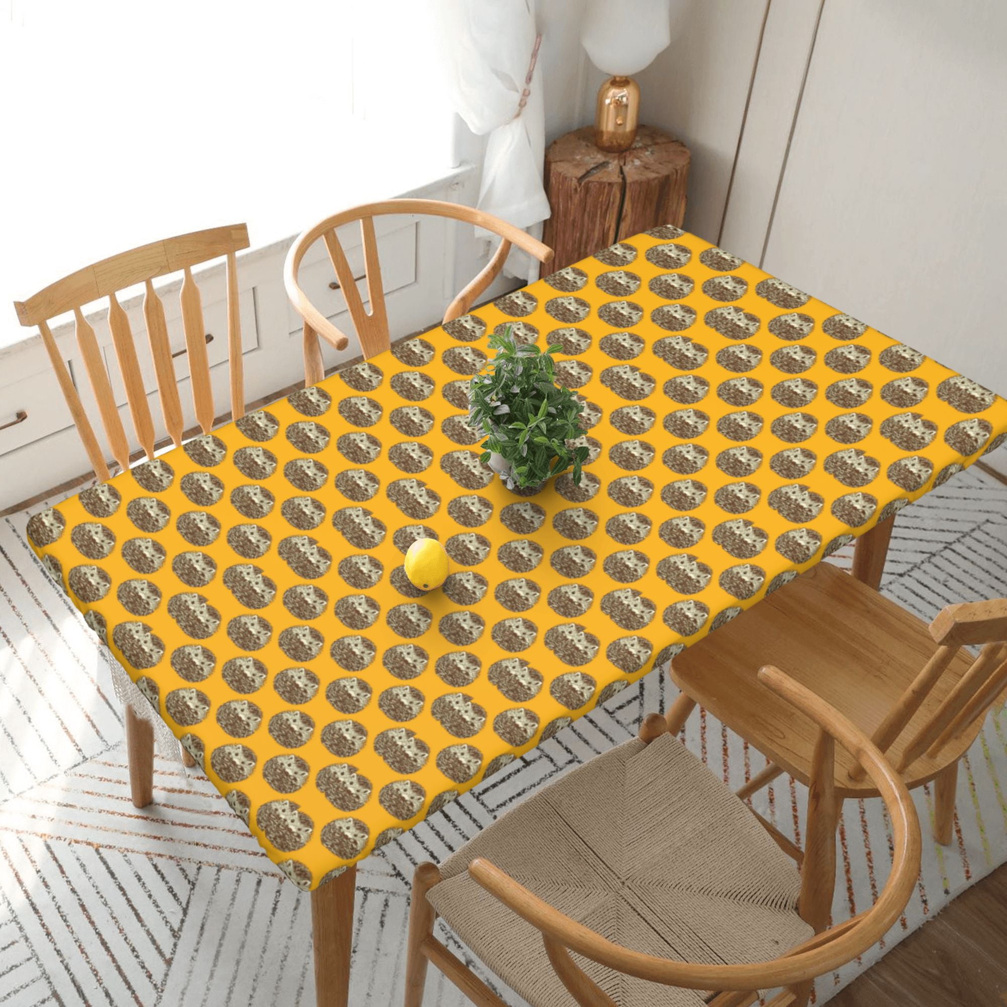 Home Deluxe Tablecloth Yellow Cute Hedgehog Pattern Waterproof Elastic