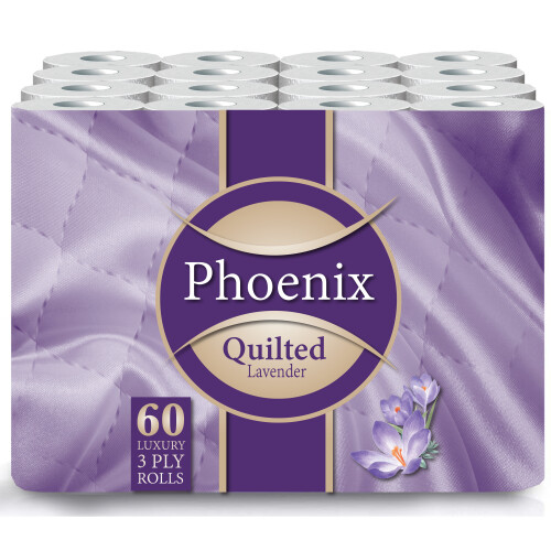 60 Phoenix Toilet Roll Bulk BuyQuilted White 3 Ply Lavender Fragranced Toilet Paper (5 x 12