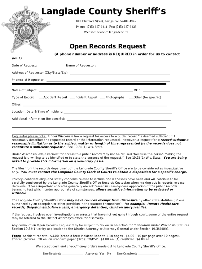Submit an Open Records Department of Doc Template