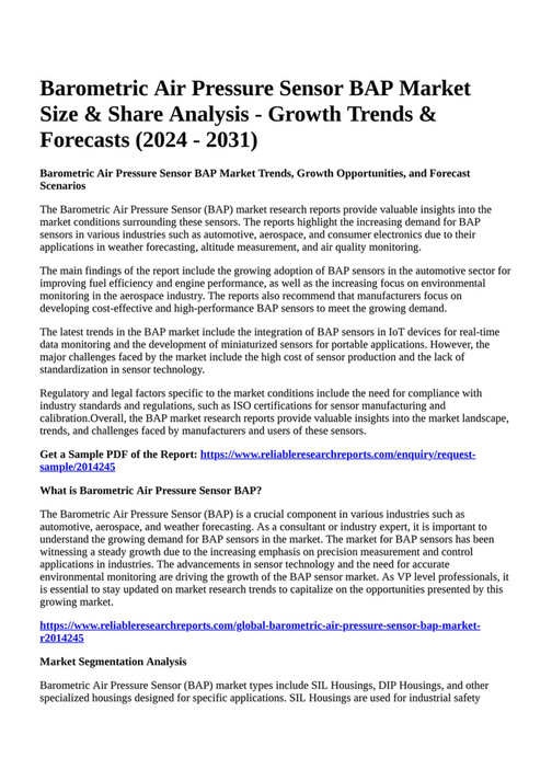 Reportprime Barometric Air Pressure Sensor BAP Market Size & Share