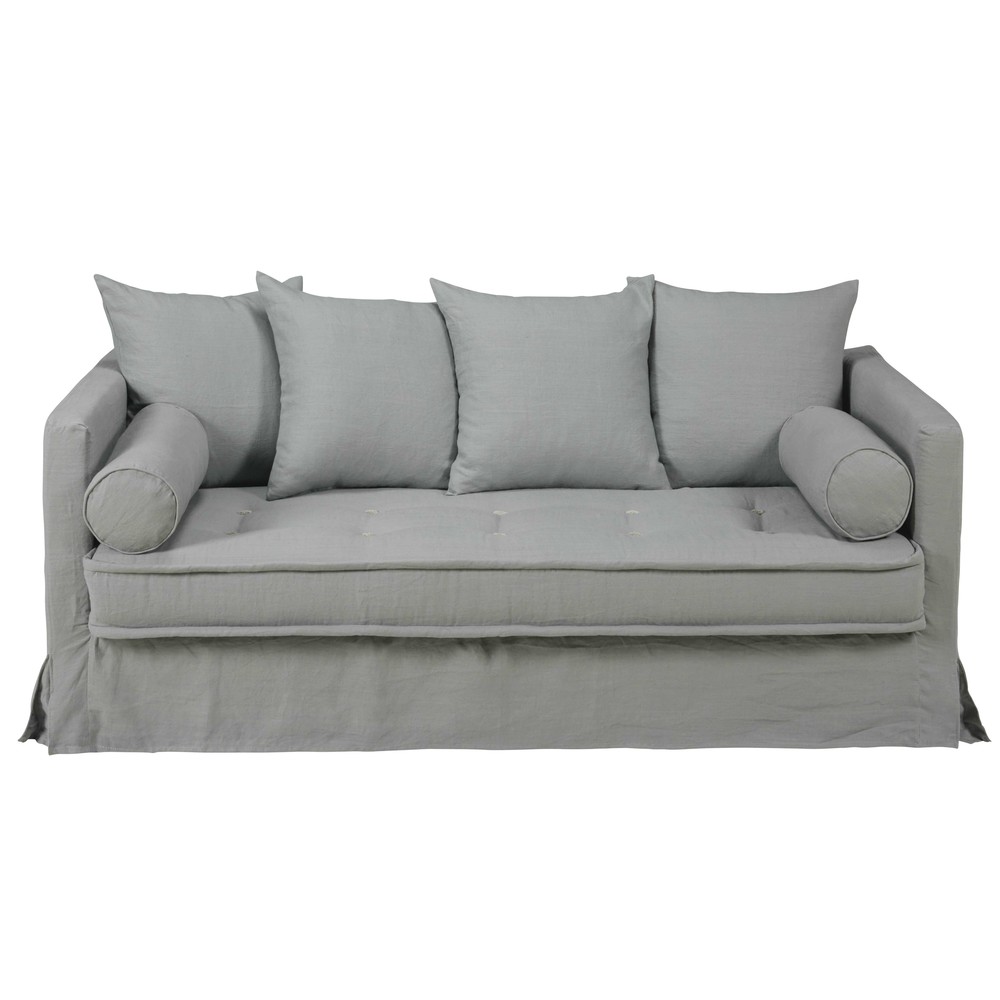 Light grey 3/4seater washed linen sofa Matangi Maisons du Monde
