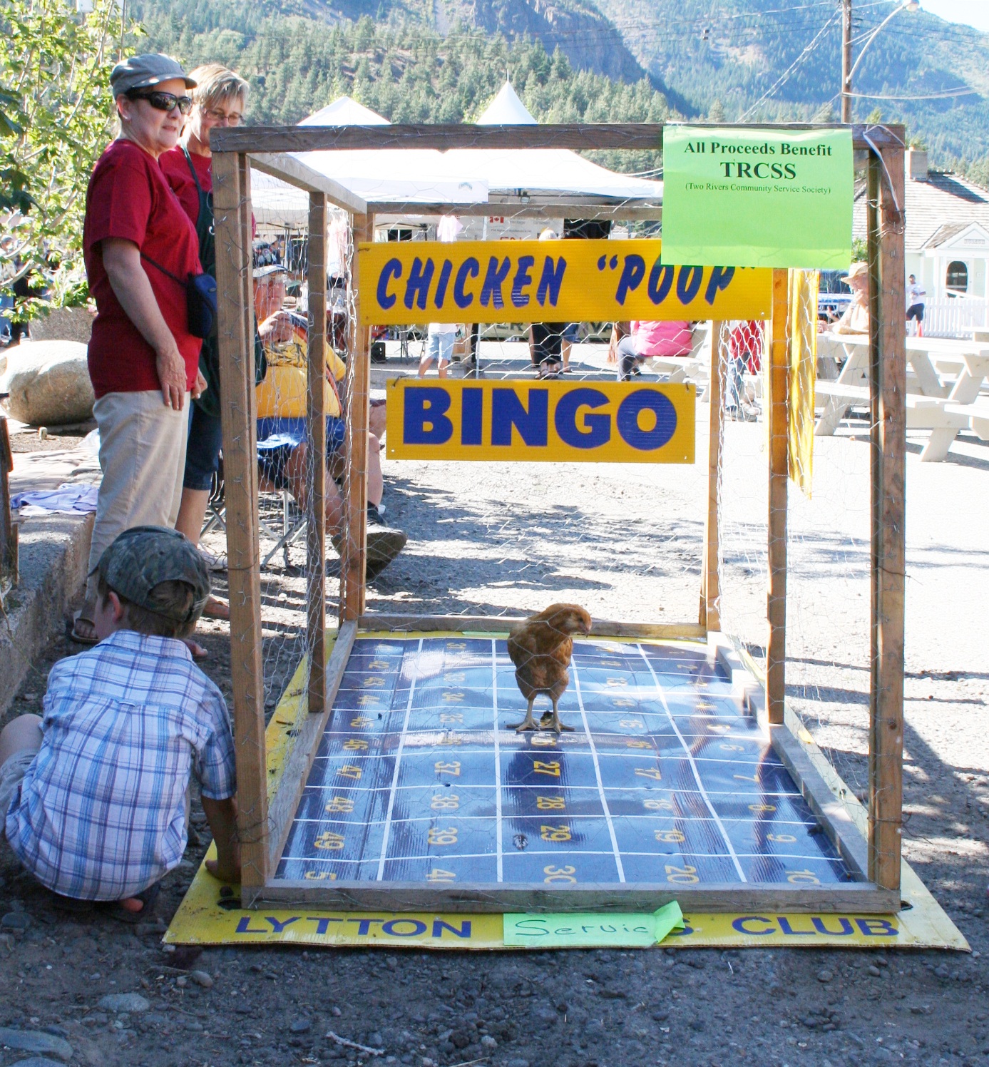 Lytton, BC, Canada Chicken Poop Bingo! Paul Clarke Flickr Chicken Poop Bingo Board You set up a squared board with numbers (pick an appropriate amount of numbers and squares depending on the size of your event) and install chicken wire around it. Load up this crazy chicken and watch as he drops his poos on the oversized bingo board. Familiar play pattern with the gross factor. Watch and laugh as the chicken walks. Chicken Poop Bingo Board.