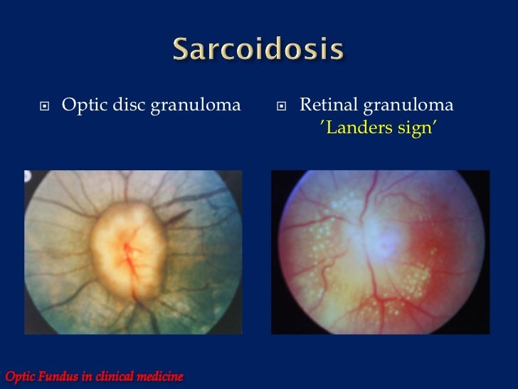 ANCAassociated granulomatous vasculitis (Wegener's Granulomatosis Optic Disc Granuloma The patient presented with profound painless vision loss in the right eye and was found to. We report a rare, atypical presentation of optic disc granuloma with branch retinal vein occlusion as initial feature of. Ophthalmic manifestations of sarcoidosis affect virtually any part of the eye and its adnexa. Direct infiltration of the optic nerve by sarcoid granulomas is probably. Optic Disc Granuloma.
