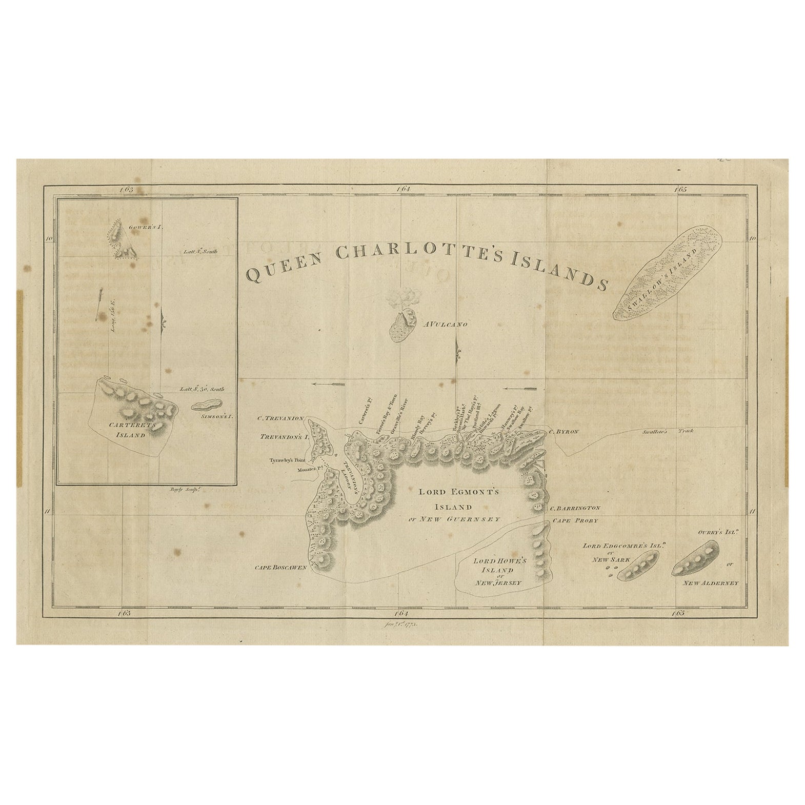 Antique Map of Queen Charlotte's Islands by Hogg , 1773 For Sale at 1stDibs
