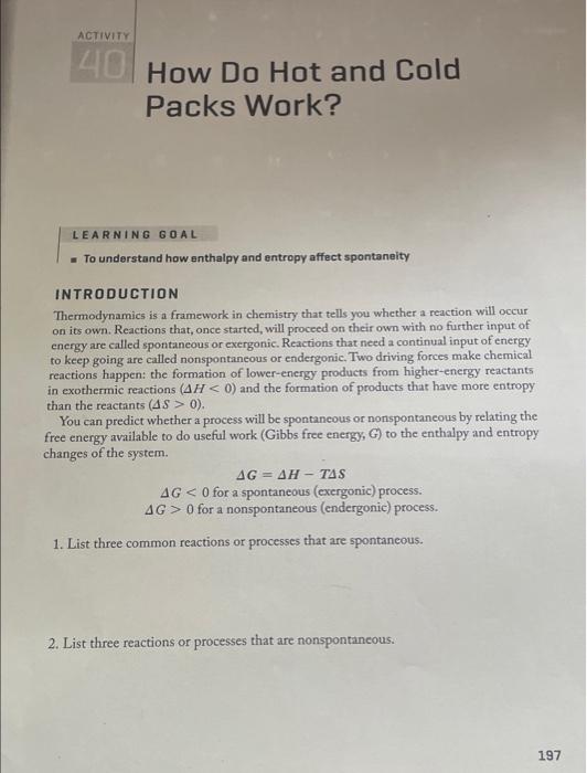 Solved ACTIVITY 40 How Do Hot and Cold Packs Work? LEARNING