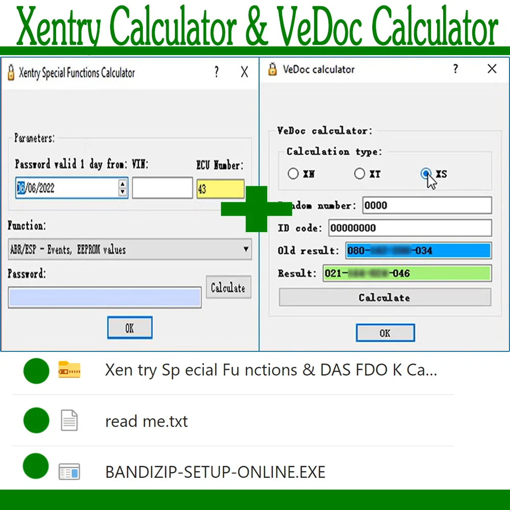 XentrySpecialFunctionsCalculatorDASFDOKVeDocCalculator2018