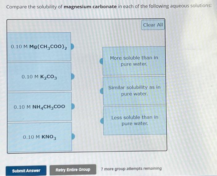 Solved Compare the solubility of magnesium carbonate in each
