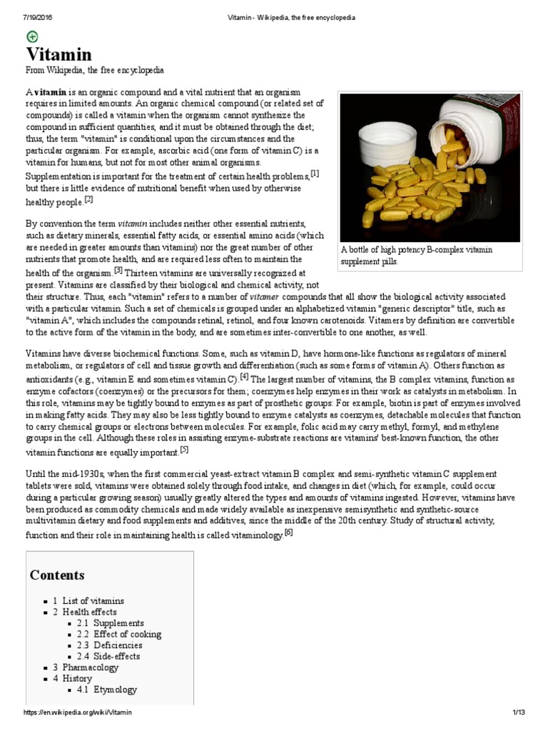 Vitamin Wikipedia, the free encyclopedia.pdf Vitamin Dietary Vitamin Supplements Wikipedia un suplemento vitamínico es un preparado que contiene vitaminas. a multivitamin is any of a group of vitamins used often with minerals needed by the human body to function properly. Se suele utilizar cuando se prevé una carencia de. this collection of fact sheets and other resources from the nih office of dietary supplements (ods) and other. Vitamin Supplements Wikipedia.
