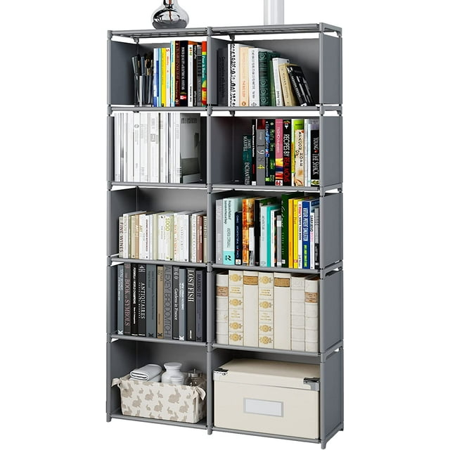 DIY Grid Shelf Bookshelves, Bookcase 10 Cube Storage Organizer Tall
