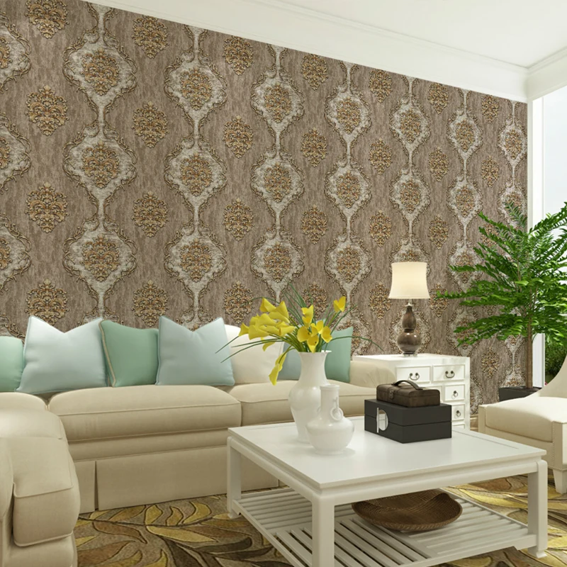 Retro style wallpaper classical damask pattern for living room wall